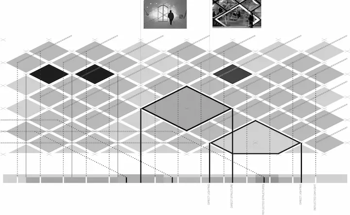 In this project, we attempt to deconstruct and codify the formation of space by the manipulation of natural and artificial light sources. We develop a visual language to measure and express the characteristics of various arrangements of light, from the visual cues of linear arrangements to the expansion of space by revealing a flat surface as a volume of light. We in turn utilize that language to propose a design for an office tower at the corner of Dey and Broadway, meeting both the practical requirements of the project while also utilizing the language to inform the utility of the spaces created through the manipulation of natural and artificial light at the project site.